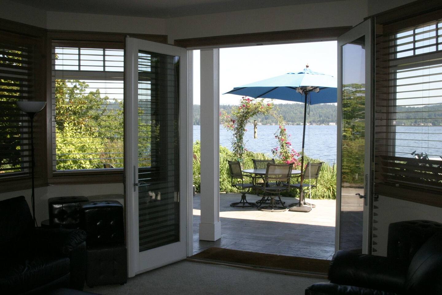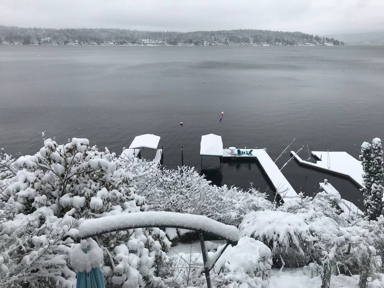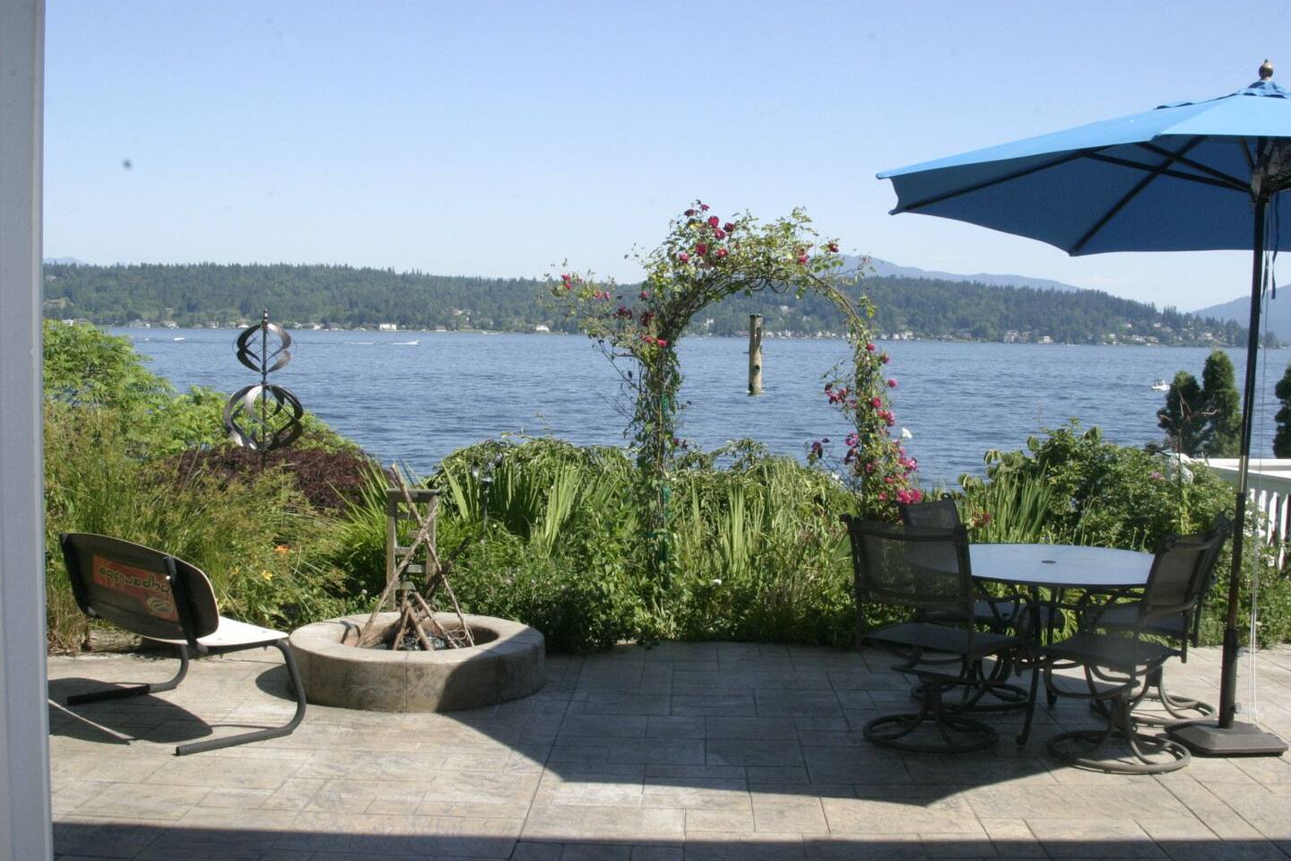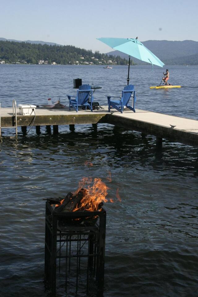 Beautiful, self‑contained apartment featuring three bedrooms (King master suite, additional King bedroom, and a Queen bedroom) and two bathrooms, including a private ensuite in the master. The second bedroom includes a Peloton Bike, and guests also have access to weights and a balance ball. Just outside the master suite—under cover—you’ll find Life Fitness equipment (T3 treadmill, X3 elliptical, and C3 bike) for all‑weather workouts. The apartment opens to a large outdoor area with a dining setting, fire pit, and direct access to the garden, dock, and lake. Lake Sammamish is freshwater and safe for swimming, with warm temperatures in summer and serene beauty during the cooler months. A BBQ is located just outside the main door for easy outdoor cooking.